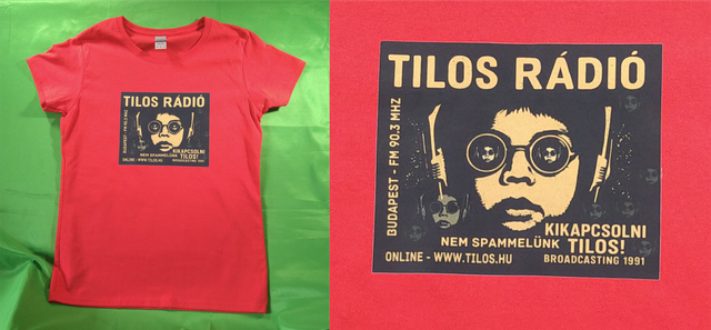 Ladies T-Shirt - Red - Size 'M' - Nem Spammelünk Tilos Radio Inspired Design - Tilos Maraton Glasgow 2025 Edition - All Profit goes to www.tilos.hu
